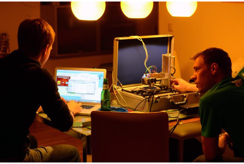 Erik, Florian, and I at Erik's house, where the machine made its first 3D print