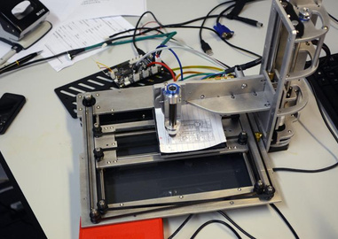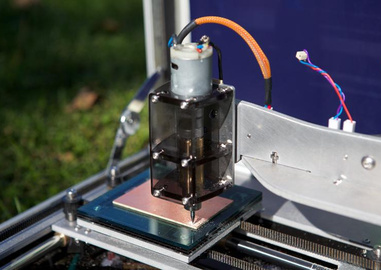 | It's alive! Popfab's first creation is a drawing of a PCB at Ultimaker HQ. |