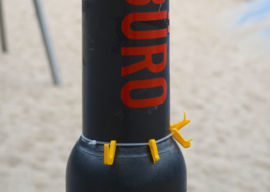 Nadya designed the logo, which we had vinyl cut (and also put on t-shirts) at a shop in Berlin. |