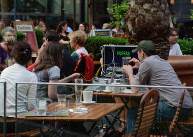 | Outdoor fabricating on a beautiful day outside MIT's Kresge auditorium |