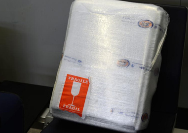 Still unfinished, Popfab made its way to Berlin via Saudi Arabia. The Saudis were none-too-keen on letting Popfab fly coach, so I paid extra to have it wrapped and sent below. |