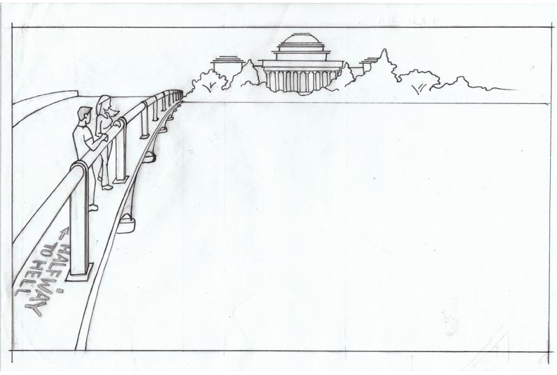 Melissa's finished drawing, inked and ready to be traced in Adobe Illustrator.