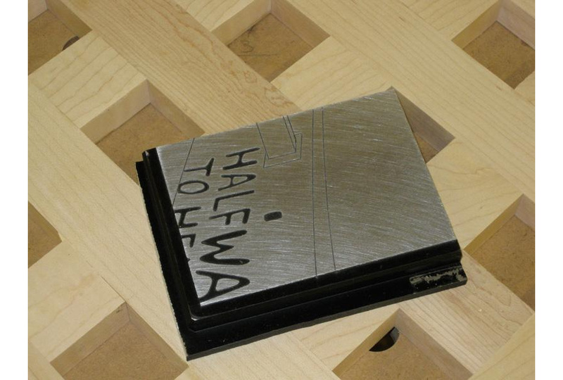 This finished sample proved out the overall fabrication strategy. It also informed the eventual decision to darken the artwork but not the border.