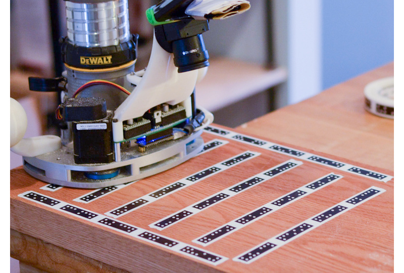 Our position-correcting router relies on a field of high contrast dominoes - which are easy for the computer vision system to identify - in order to locate itself.