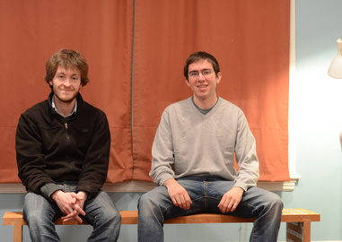 | Alec and I sitting on a bench we joined together using dados cut with Origin, in early 2014. |