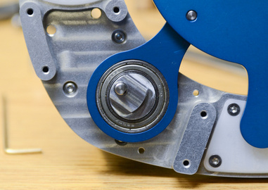 | These HDPE inserts constrain the lollipop features on the linkage plate to resist out-of-plane loads from the spindle. |
