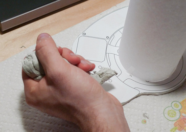 Applying strips of fiducial markers that had been printed on 8.5"x11" paper using a standard desktop printer. Improving on this became the focus of an early project. |
