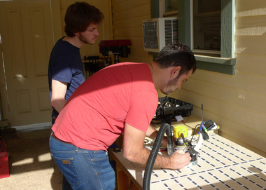| Alec working on code while keeping me company in the machine shop |
