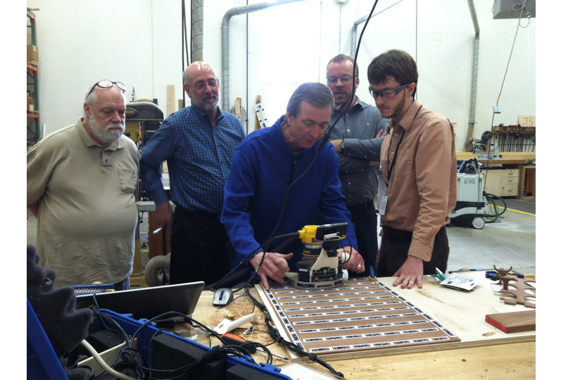Another fun trip was visiting folks at Rockler's headquarters in Minnesota. They were unimpressed by cutouts of the United States, but very happy to see us cut a straight line (which they insisted on measuring to be sure).