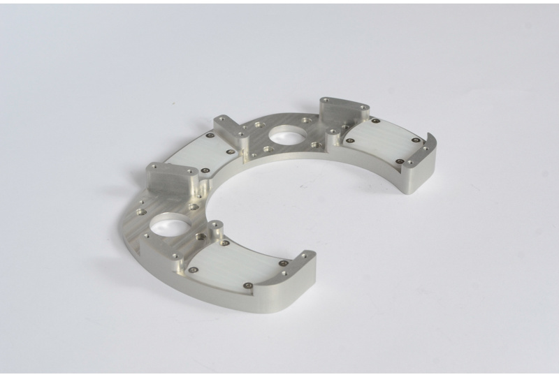 These HDPE inserts constrain the lollipop features on the linkage plate to resist out-of-plane loads from the spindle.