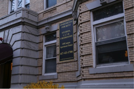 The many apartment buildings South of Boylston Street were advertised in for rent via signs by ‘OffCampusApartmentFinder.com’ service, evidence that many residents here were students, shown in Figure 4. Within walking distance are several institutions of higher education, including Northeastern University, Boston University, Massachusetts College of Pharmacy, and Simmons College. Student residents are often very transient, moving every year, and are often absent during off term months. Nearby businesses too are student focused; a neighborhood fast-food restaurant advertised its late closing hours, likely to appeal to the young residents and sporting event attendees. I am interested in observing the relationship between the site, the educational institutions, and the students and other residents who live there, likely manifested though land ownership patterns.