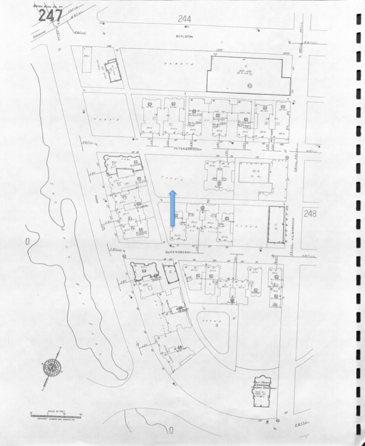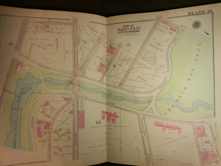 Figure 7. Bromley 1928, depicting the buildings at and surrounding the site. Several are owned by Simmons College.