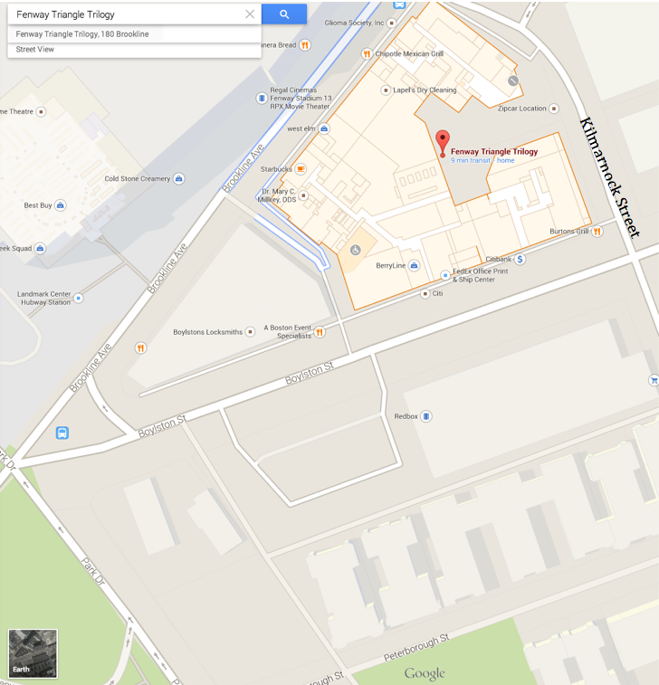 Figure 5. Present day Google map highlighting the Fenway Triangle Trilogy development, a recent mixed-use development. (Google Maps 2014).