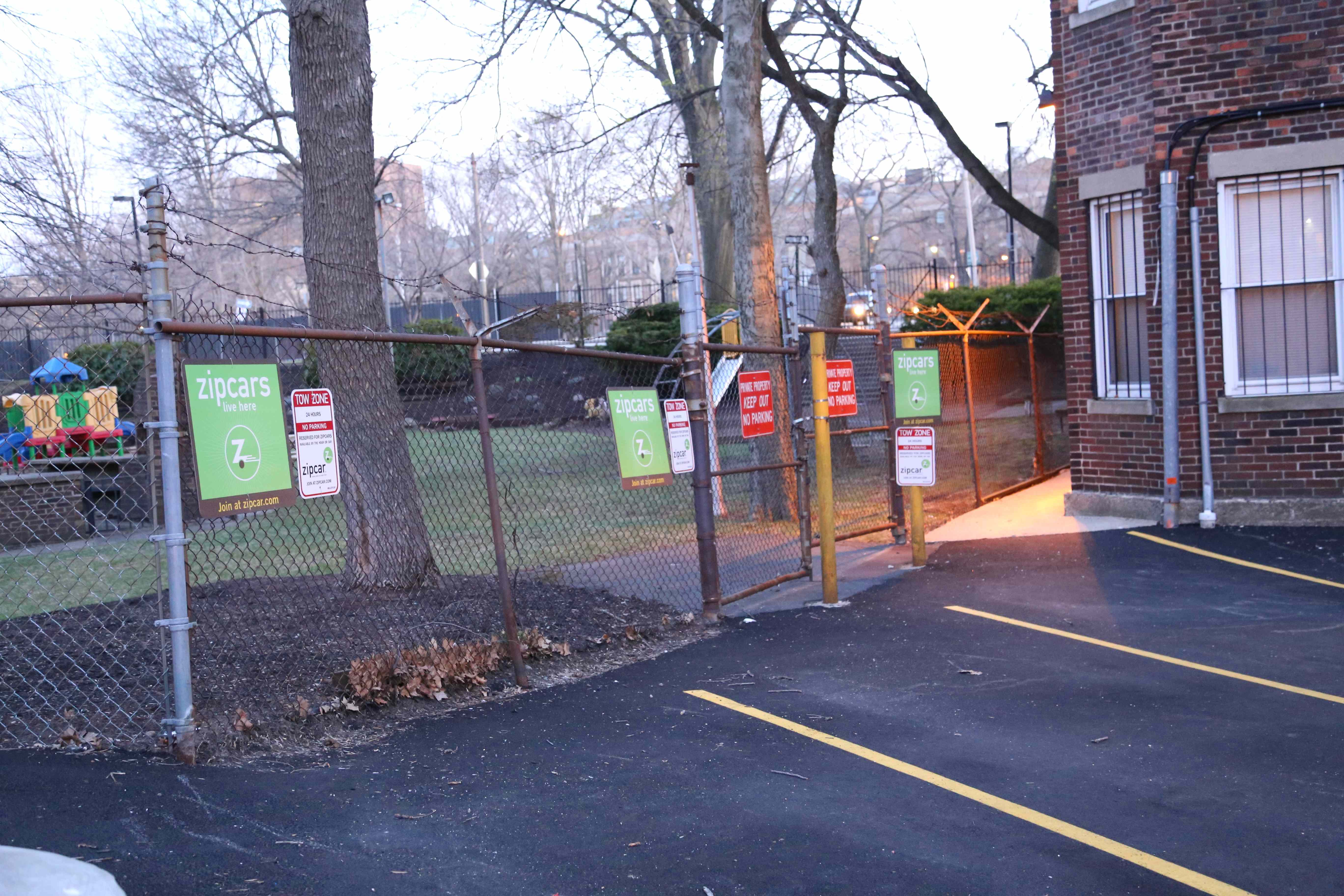 Figure 16. ZipCar reserved spots visible in parking lot of apartments. Personal photograph.