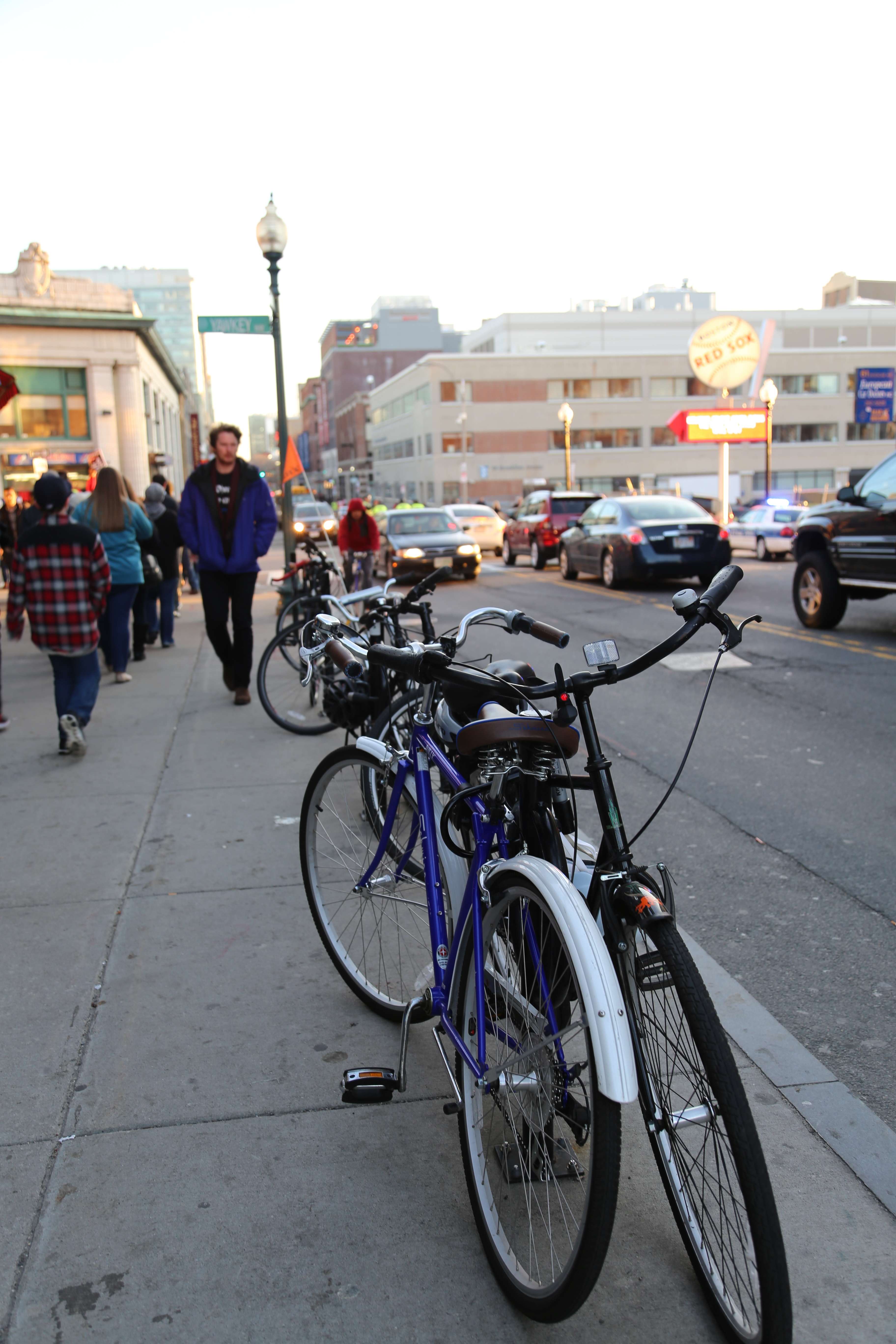 Interest in bicycling among urban residents is also resurgent. While surveying the site, I saw new bicycle stands installed on several sidewalks, as seen in Figure 5. The growth of bicycling has also prompted the Hubway shared bicycle system, which has a station at the intersection of Brookline Avenue and Boylston Avenue. [1] The system appeals primarily to the young urban professional or the well-to-do, as well as the college students who often receive subsidized plans through their universities. [2] Landlords have also accommodated this growing trend; I noticed a locked bicycle room in the alleyway of a residential building, in Figure 5. The growth of both personal and shared bicycle infrastructure is part of a national trend among major American metropolises – cities like New York, Chicago, and San Francisco have implemented bicycle sharing systems as well as bicycle lanes. It is also an artifact indicative of the past; because the area was planned and built before the advent of the post-World War II suburban pattern, the neighborhood was dense enough to make bicycling a viable option. These planning decision had such an impact on the development of the site that more than a century after the neighborhood’s creation, this new transit option has been successful.