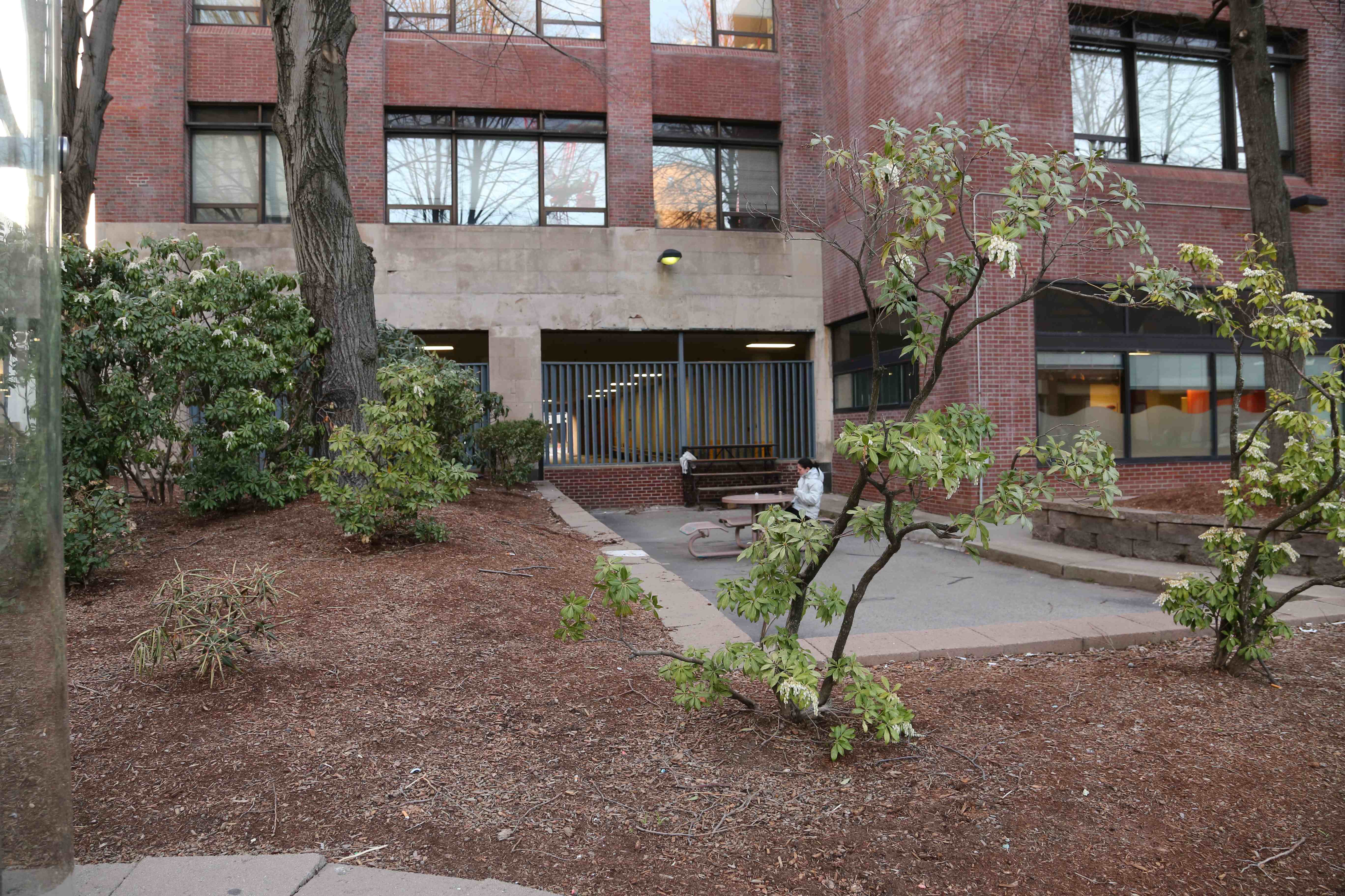 Figure 8 depicts a building with an attached parking garage. The Brookline Avenue facing auto-entrance was bricked closed, and the driveway was converted to a park-like space. The end of the driveway was covered in the existing landscaping, as evidenced by the young trees in the foreground compared to the large, old trees on the sides of the driveway. The modification was constructed likely to improve traffic flow and decrease cars travelling across the sidewalks onto the driveway. This is reflective of the national trend for traffic management along major pedestrian thoroughfares. The Fenway Triangle Trilogy project also raised concerns among the community about the impact on traffic flow that were ultimately addressed. [6] Hayden explains that public meetings “offer opportunities for discussion of places. Everyone on a project team – historians, artists, administrators – needs contact in open public meetings. It is also important to know how neighborhoods have reacted to history projects, landmark projects, or public art projects in the past: which ones succeeded, which ones failed, and why.” [7] It was likely through the directives of the local government combined with the input of the community that the current, highly functional state was reached.