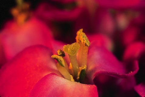 »¨ÐÄ¡¤»¨Èï June 16, 1997 Nikon N90s with AF-Nikkor 24mm f/2.8D reversely mounted on BR-2A ring; 1.3 sec. at f/16(?). Manual exposure, center-weighted metering. Nikon Speedlight SB-26 for TTL fill-in flash. Film: Fujichrome Velvia (ISO 50).