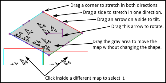Note that you can drag a side or corner of the map through the center of the map and to the other side. This has the effect of flipping the map over.