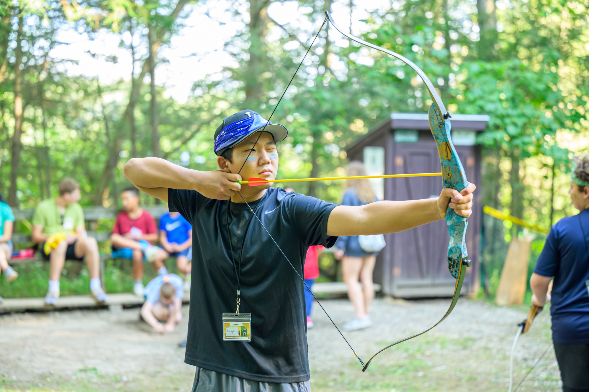 Campers participate in rotations including archery, rock climbing, arts and crafts, and cooking.