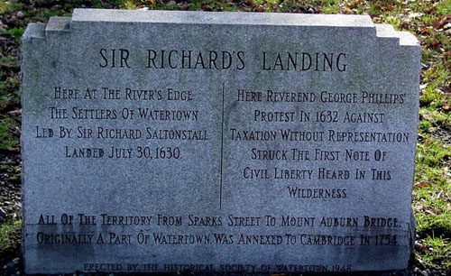 Saltonstall’s 1630 landing near the corner of Mount Auburn Street