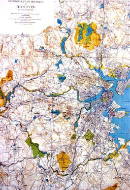 Charles Eliot's 1893 Metropolitan District Map of Boston, depicting Eliot and Baxter's "Emerald Metropolis"