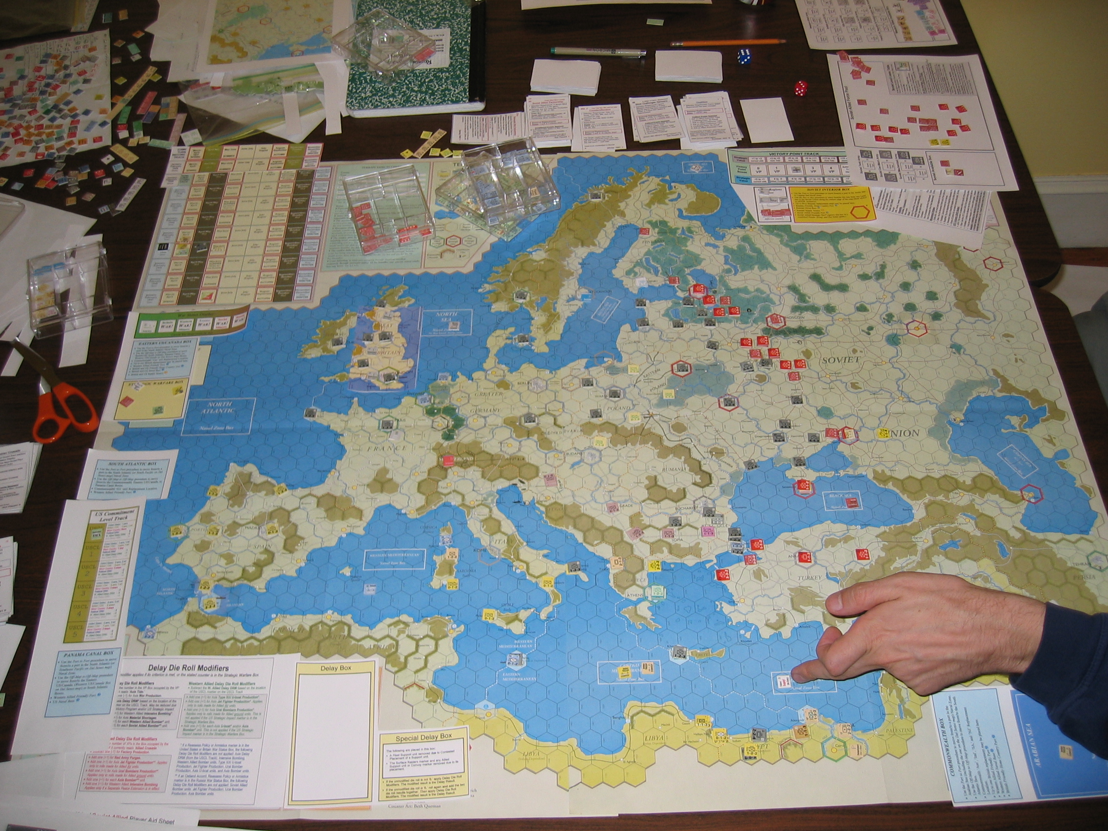 ...because when I revealed Mobilization Limits, I rolled Allies Support Resistance, and the Italian HQ went right back into the Delay Box. This was a shame, because if I'd not made that screwup, I was in position to throw a 3-2 +4-2 shifts at the british line, and that would have been very good start to cracking the british line in Egypt.