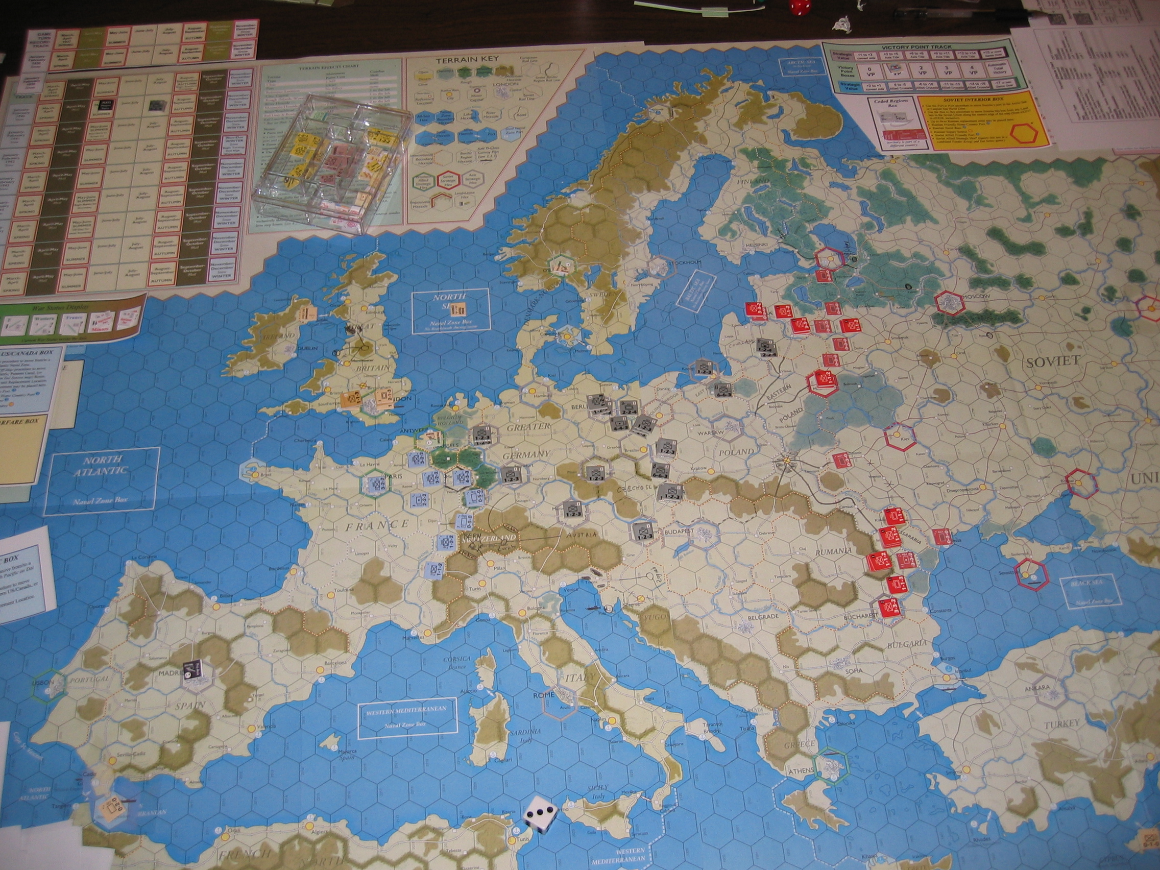 The Soviet summer card was Molotov Diplomacy (though it was called Soviet Expansionism back then). The Soviets had Bessarabia, Finnish Frontier, and the northern half of the Baltic States for Ceded Borders, giving them a 50/50 shot at a Neutrality result with each turn. The target was Turkey, who had a pro-allied Neutrality marker on it at the time. The Soviets blew their first two rolls, and this was before the card was modified to give the Axis a Neutrals Pressured result on a blown roll. They succeeded on their third roll, picking up Turkey as a Soviet Ally.