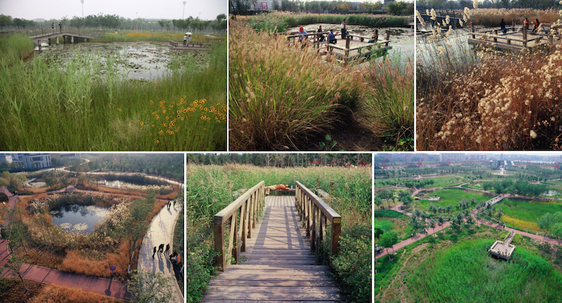 The paper studies two ecological park design by Kongjian Yu, a Chinese ecological urbanism pioneer. Rooted from Kongjian Yu's theory and publication, the two cases are his reprensentative works in different period, and his exploration of ecological urbanism is different. The paper studies the ecological design of the two projects, and analyzes what, how, why of the incentives of the design. Critiques of long term maintenance and the relationship of ecology and urbanism is discussed. Comparisons are made between these two projects in the same framework. In the end, the paper discusses the successful reasons of these projects, and whether it is replicable in other countries.