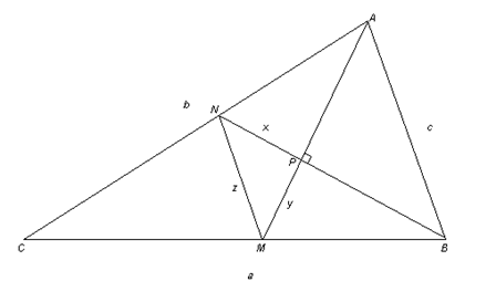 Let NP = x, MP = y, and MN = z, as shown in the figure above.