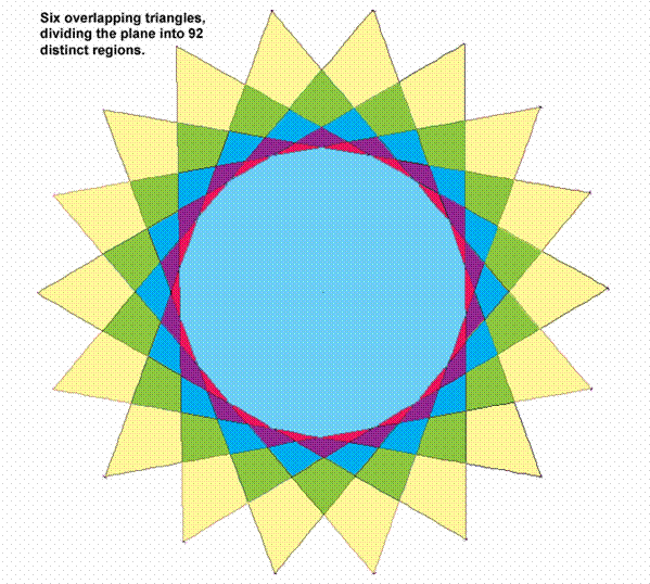 where Rn is the maximum number of regions created by n overlapping triangles.