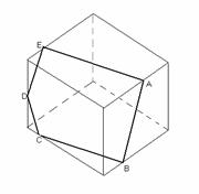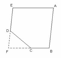 A, B, C, D and E are all in the same plane, so if we extend ED and CB, they will meet at a point. Let us call this point F.