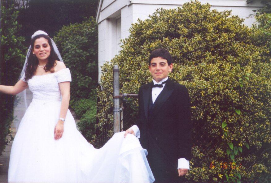 Yevgeniya getting ready to enter the location where the wedding ceremony is to be held; her brother Yan (one of the groomsmen) is holding her train (a.k.a. "tail"). (1/72)