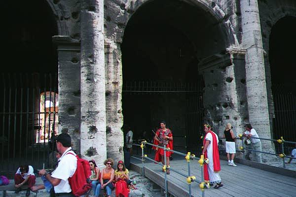 An entrance to the Colosseum, with a couple of guys dressed up as ancient Romans. (54/72)
