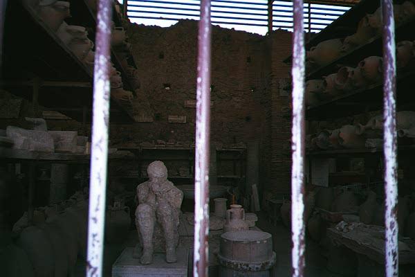 At the ruins in ancient Pompeii: a mold of a person suffocating during the volcanic eruption. (59/72)