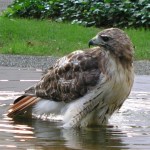 Hawk in fountain