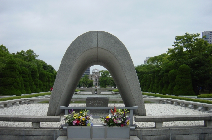 The view of the Cenotaph and A-Bomb Dome in Hiroshima Peace Memorial Park. |