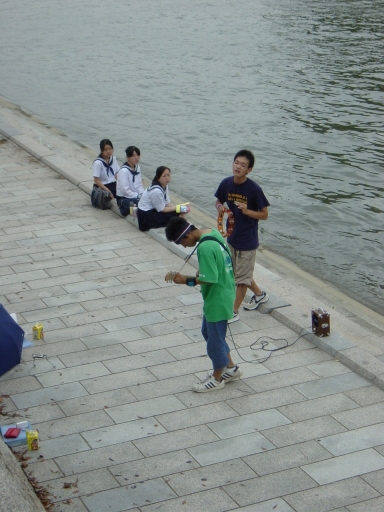 The Hiroshima Youth gather along the banks of the Motoyasu-gawa and sing. |
