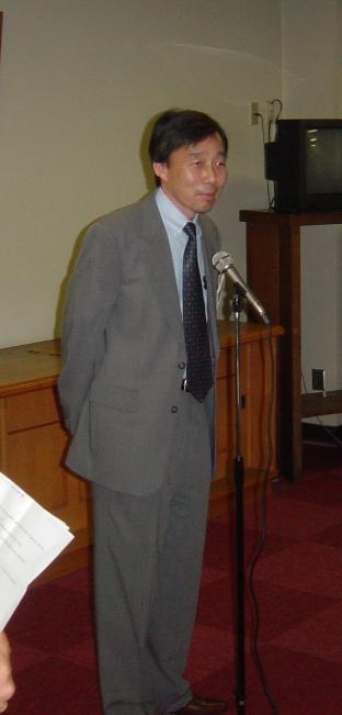 Inaba-san closes the welcome party with a speech. |