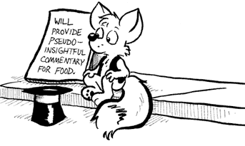 April 2001 | Added "Categories of Animals", "The Fox and the Crow" and "Why do they keep yelling at me?" to netsam; added graphical version of Acquainted with the Night. |