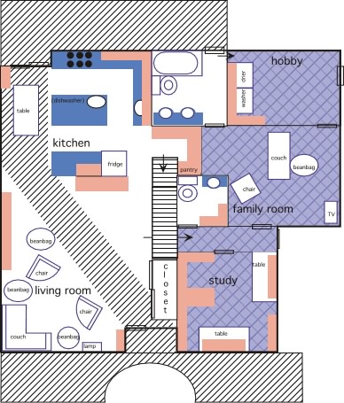 - Label the rooms in a pretty foreign script (Hebrew or Mandarin or something) -- "Kitchen".... "Bathroom"... "Window"