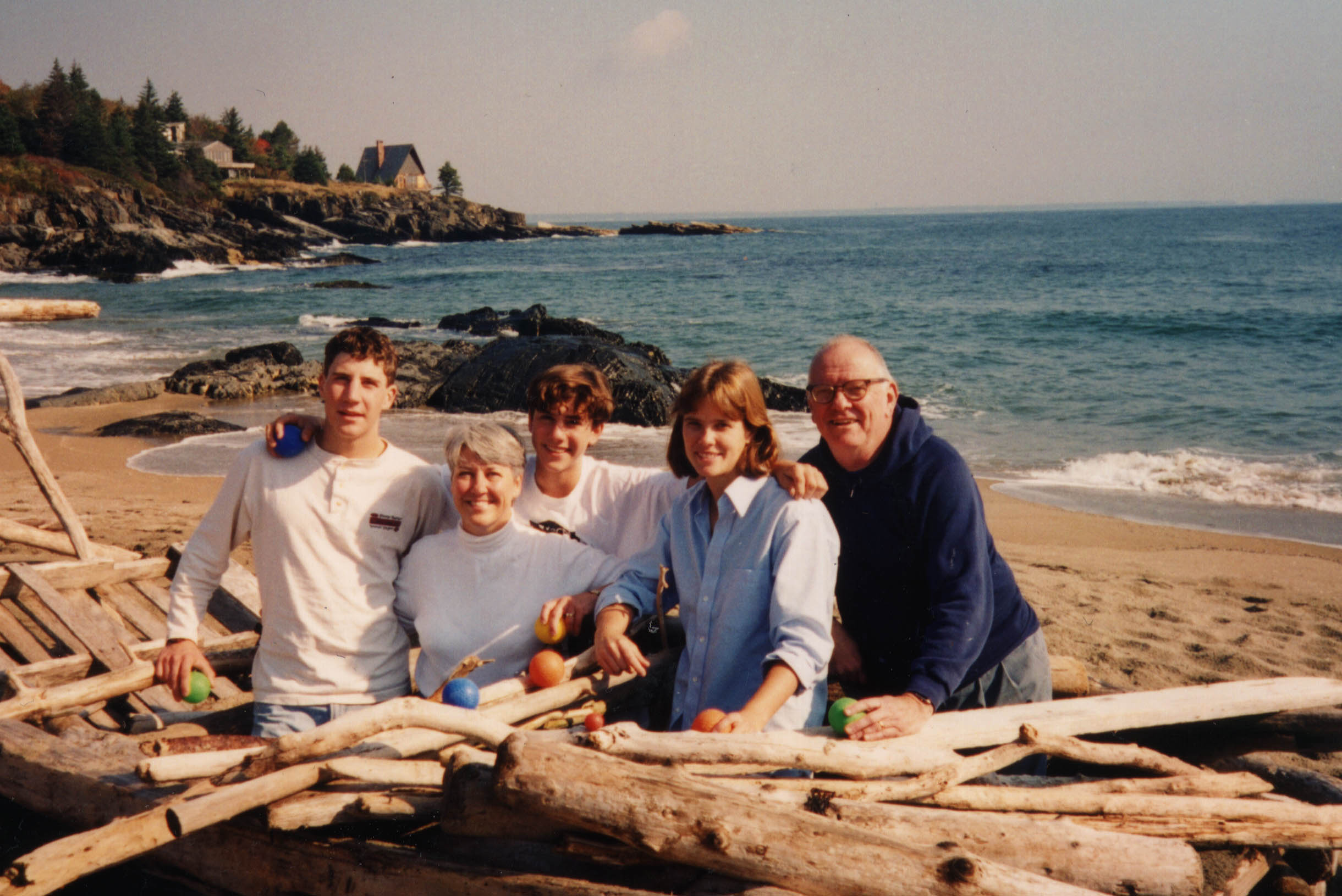 This is a picture of the U.S.A.-based family at the beach in Maine