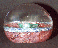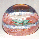 The lampwork is very flat within the dome of the weight, a 3.2" sphere, the base is ground flat there are no markings. There is a small amount of wear on the bottom.