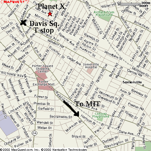 Take Mass. Ave. to Central Square and turn right onto Prospect. Take Prospect to Hampshire and turn left. Take Hampshire to Park Street, a light, and make a right. Hampshire will have become Beacon Street at the previous light. Take Park Street to Somerville Ave. Park Street tees into Somerville Ave. Make a left and take Somerville Ave to Elm and bear right onto Elm. Take Elm to Willow Ave and turn right. There will be an Ace Wheel Works at the corner on your right. Take Willow across Summer Street, a light, across Highland Ave., a light, and across Morrison Ave, a stop sign. Turn left onto the second street after Morrison which is Foskett St. Drive straigh until you are in a driveway and park. The house is on your right.