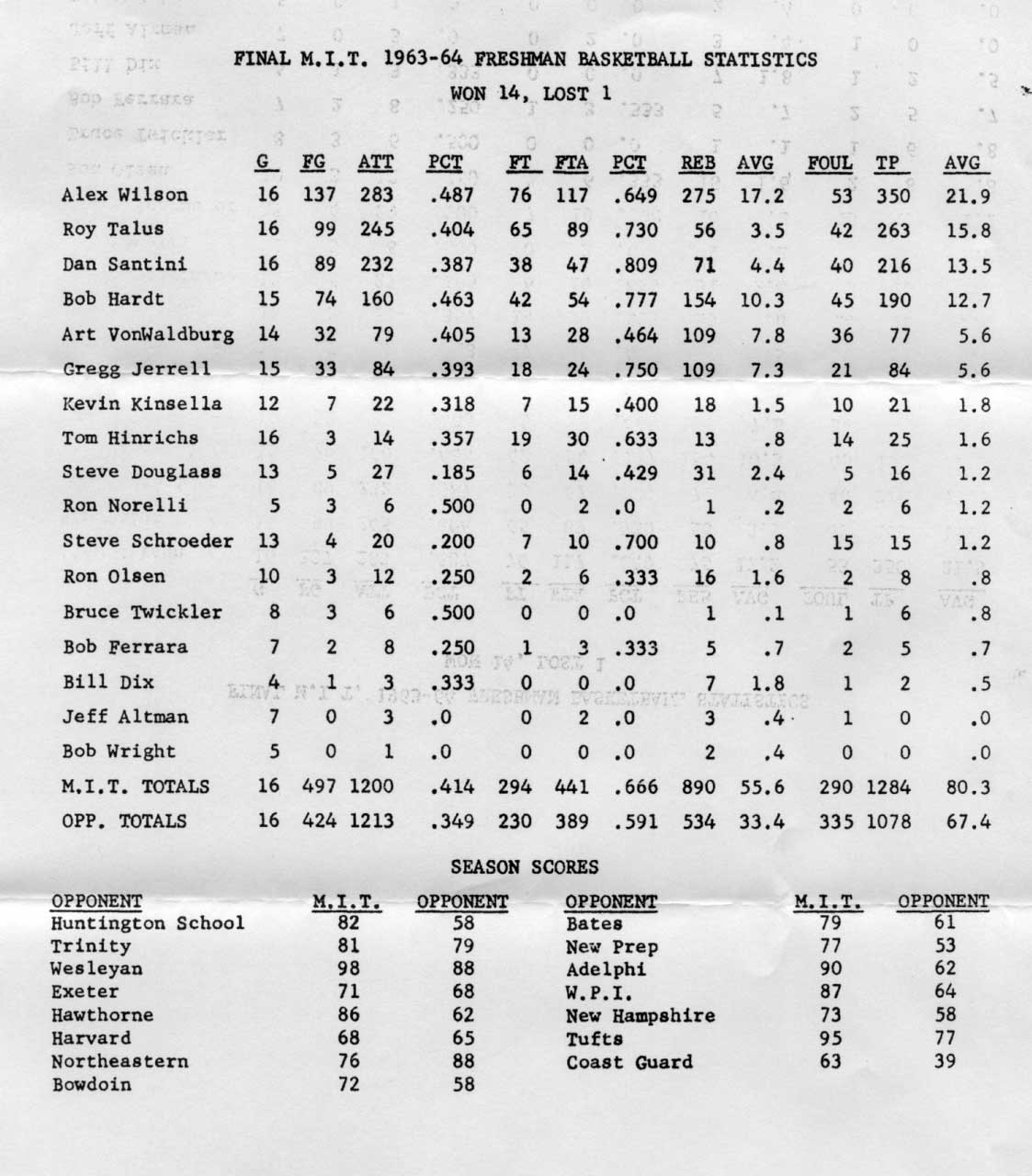 Statistics from 1963-64, MIT's "best ever" freshman team