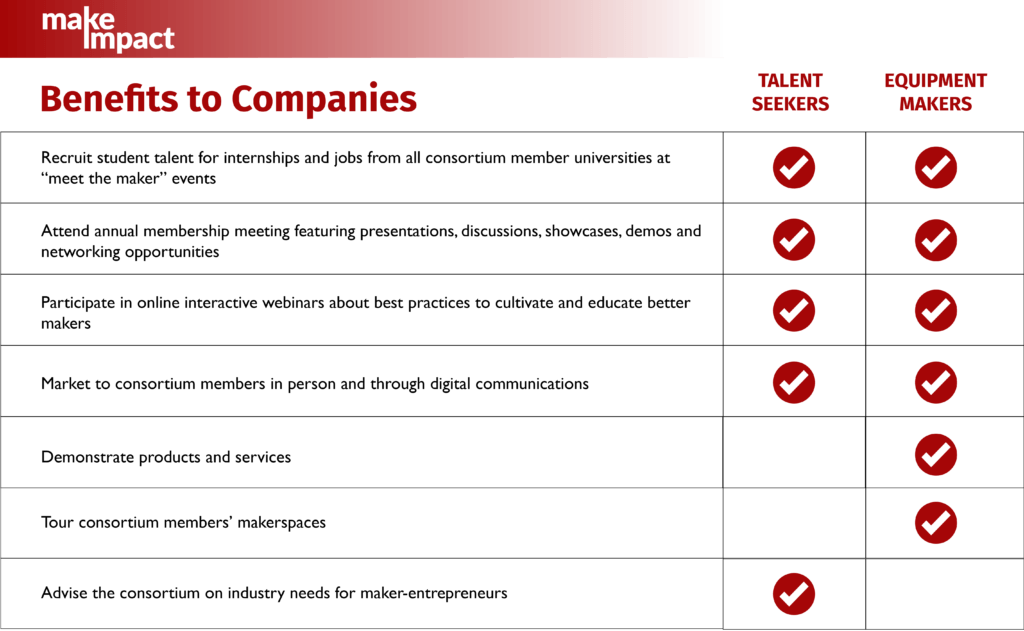 Companies that partner with the Make Impact Consortium help us build the makers of the future.