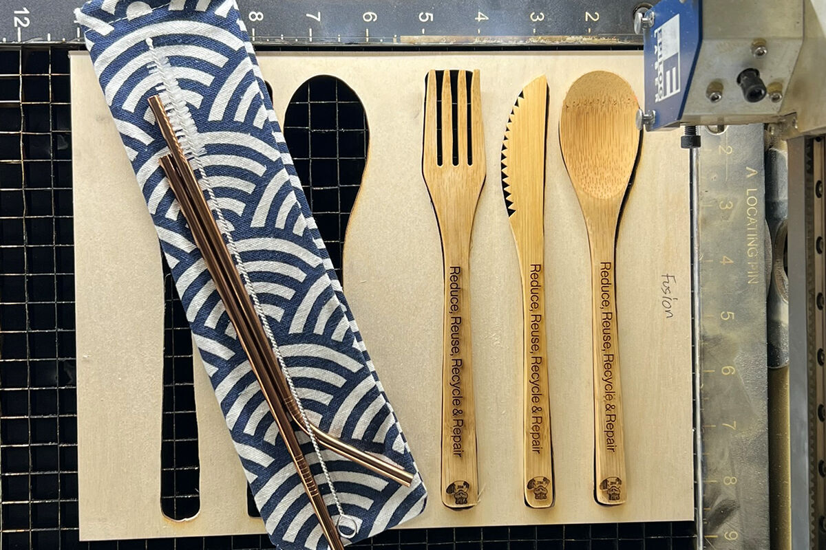 Project Manus’ mission includes building student maker communities and empowering our students to make a positive impact on the world. In order to highlight the important connections between the maker community, sustainability, design, and reuse, Project Manus recently hosted two well attended sustainability maker socials helping MIT students laser engrave their own sets of reusable bamboo utensils to cut down on plastic waste on campus.