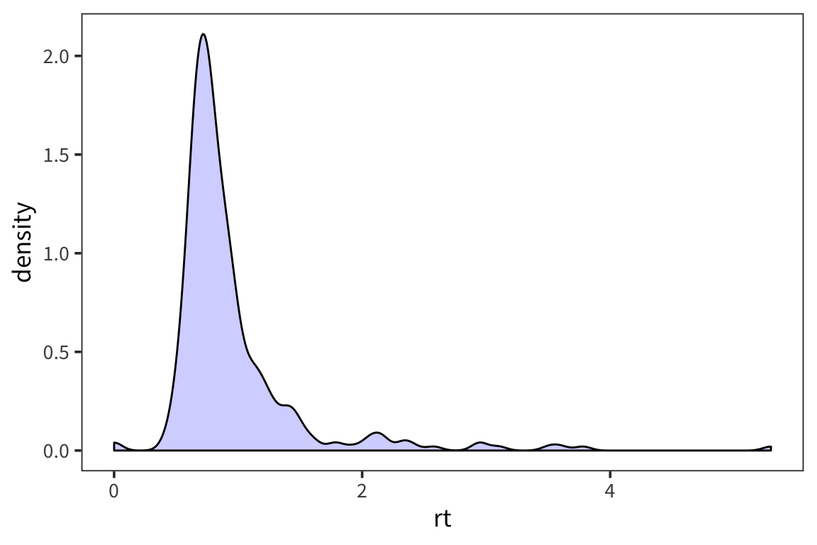 geom_density(aes(x = rt), fill = "blue", alpha = 0.2) +