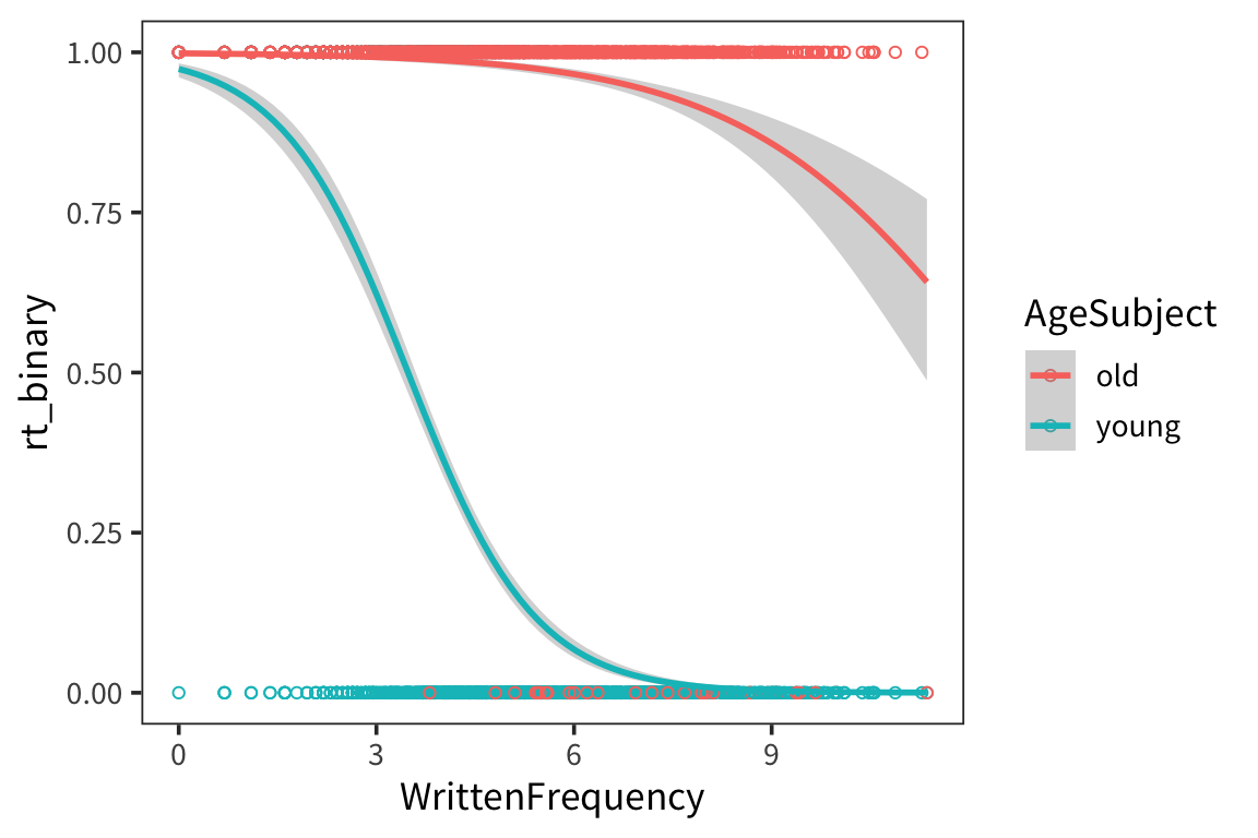 ## glm(formula = rt_binary ~ WrittenFrequency, family = binomial(link = "logit"),