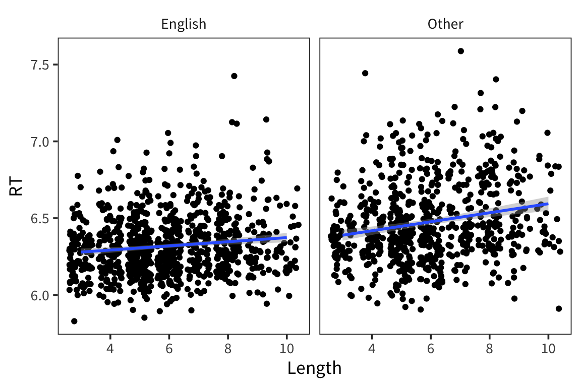 lexdec_length_native <- lm(RT ~ Length + NativeLanguage, data = lexdec)