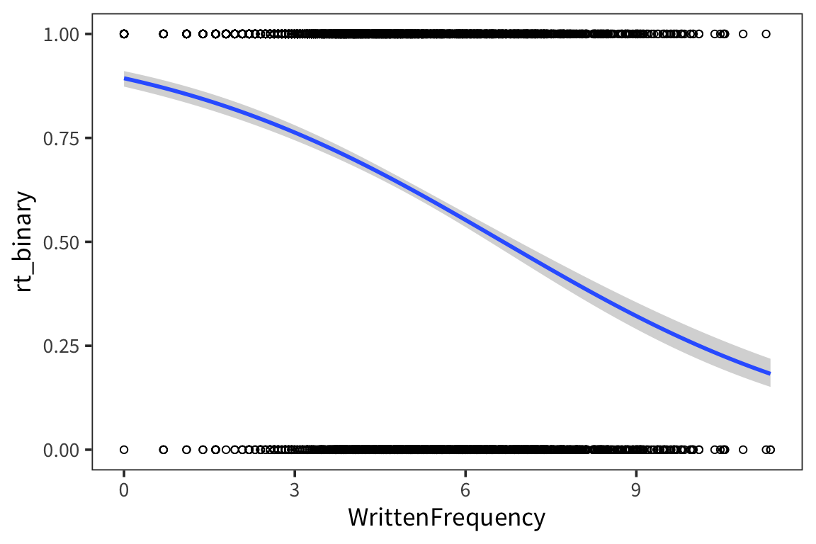 freq_glm <- glm(rt_binary ~ WrittenFrequency, data = rts_binary,